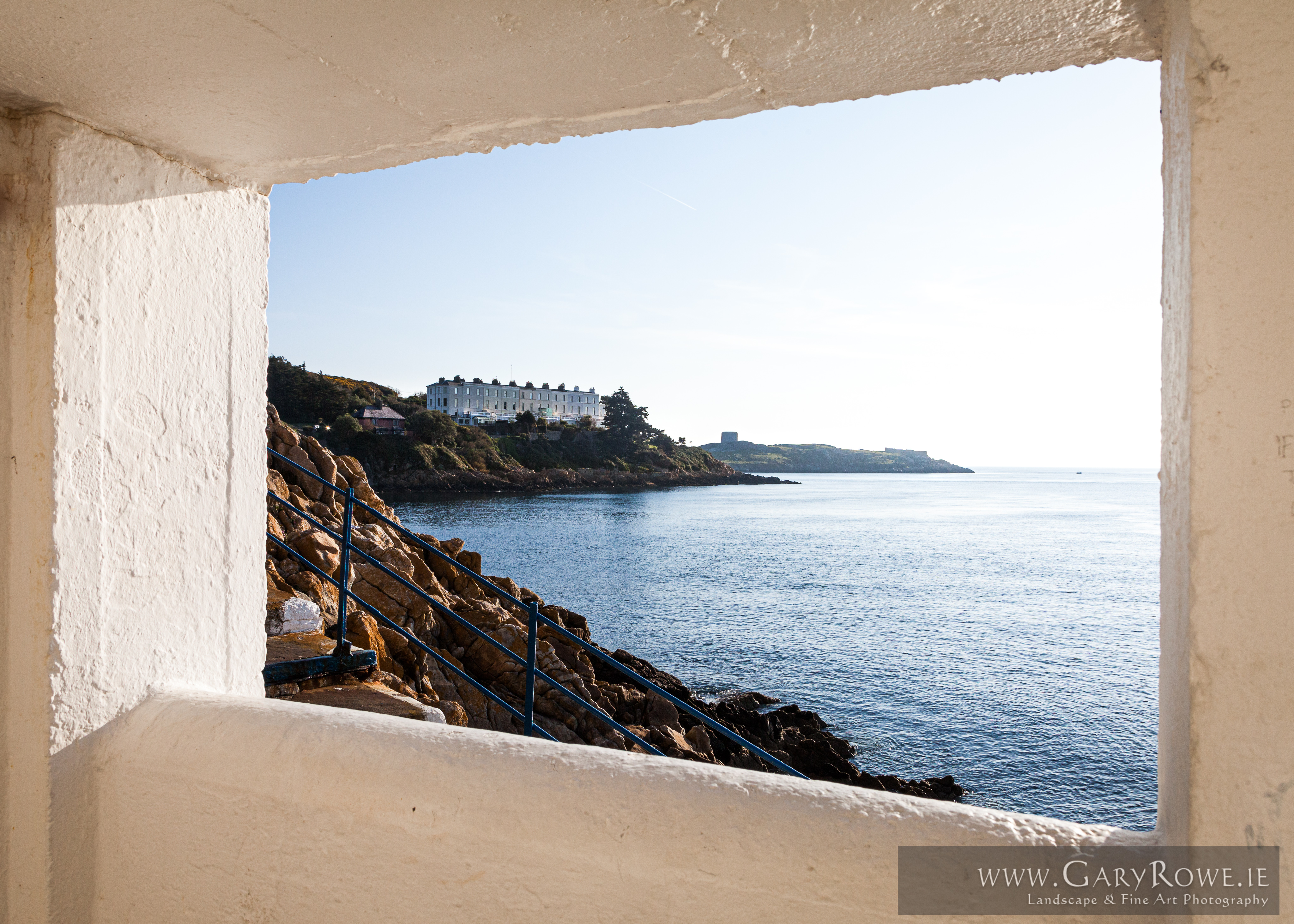 Looking at Dalkey Island through the window of the Vico bathing place