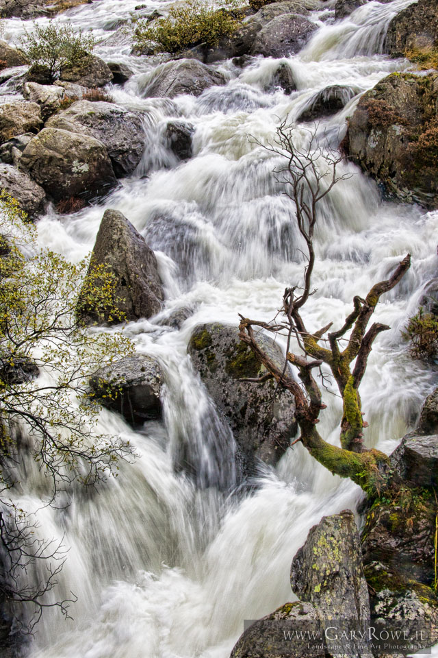 A close view of a small waterfall at Glenmacnass, Co Wicklow