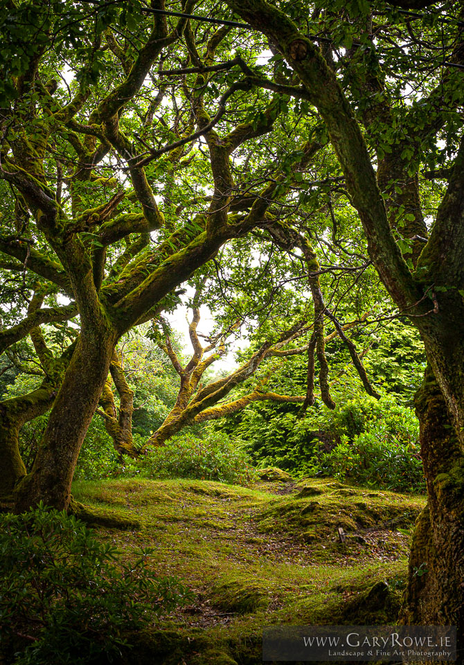 Old trees covered in moss at Ballynahinch, near Clifden, Connemara